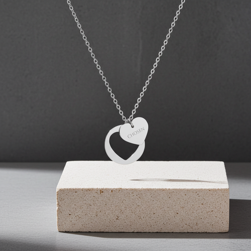 A rose-gold heart pendant engraved “FAVORED,” designed with a light, modern cutout and soft shine. Lightweight, hypoallergenic, and made for everyday wear, it adds a subtle, confident touch to any look.